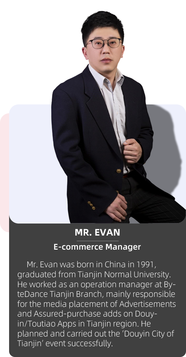 Mr. Evan was born in China in 1991, graduated from Tianjin Normal University. He worked as an